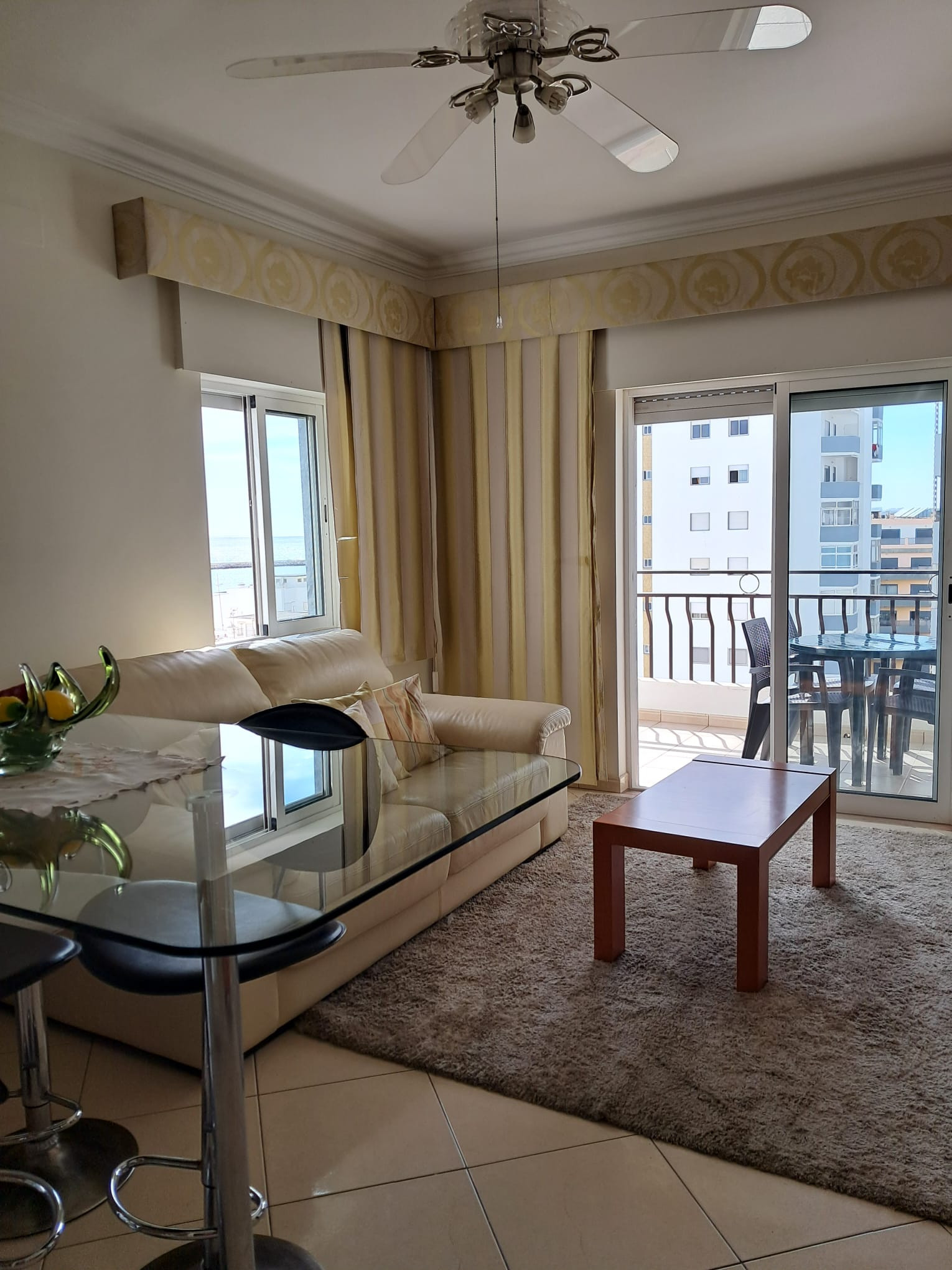 The apartment in Quarteira has 1 bedrooms and has capacity for 3 people. The apartment is is fully-equiped, and is 60 m². It has views of waterfront. The property is located 0 m from the city, 0 m from the metro station, 0 m from the ski slope, 0 m from the river, 0 m from the nature reserve, 0 m from the lake, 0 m from the thermal springs, 0 m from the park, 0 m from the international airport, 5 m from the the restaurant, 5 m from the coffee shop, 10 m from the supermarket, 30 m from the sand beach, 30 m from the rock beach, 80 m from the bus station, 1 km from the hospital, 2 km from the golf course, 3 km from the amusement park / theme park, 3 km from the water park, 4 km from the train station, 10 km from the airport. The house is situated in close to a shopping area and restaurants. The accommodation is equipped with the following items: washing machine, iron, internet (internet cable), hair dryer, balcony, electric heating, 1 TV, satellite tv. In the gas open plan kitchen, refrigerator, microwave, oven, freezer, dishwasher, dishes/cutlery, kitchen utensils, coffee machine, toaster and kettle are provided.